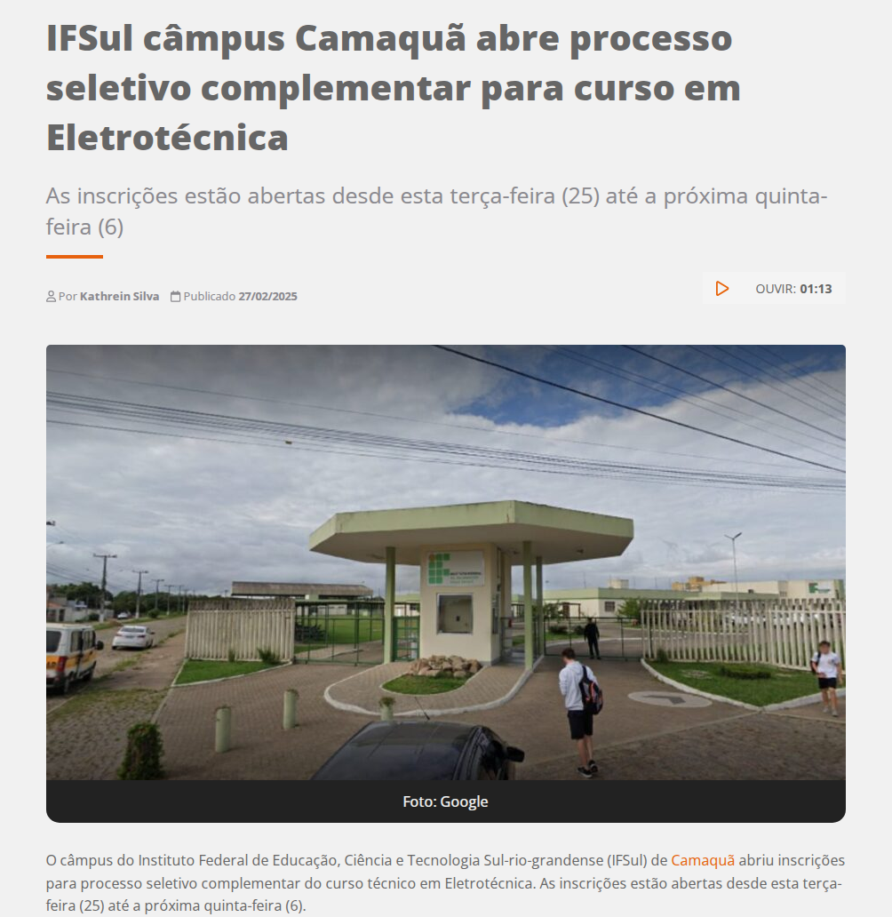 Clic Camaquã - IFSul câmpus Camaquã abre processo seletivo complementar para curso em Eletrotécnica
