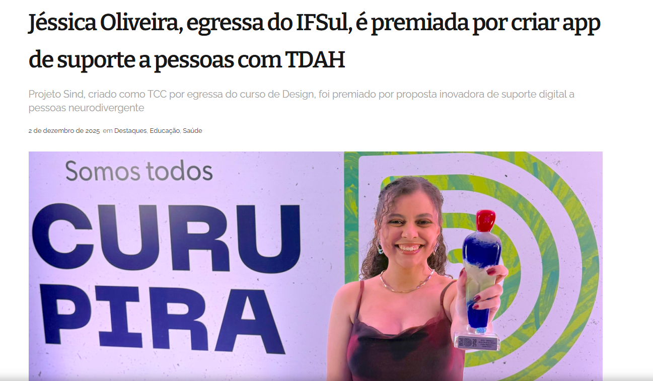 RádioCom - Jéssica Oliveira, egressa do IFSul, é premiada por criar app de suporte a pessoas com TDAH