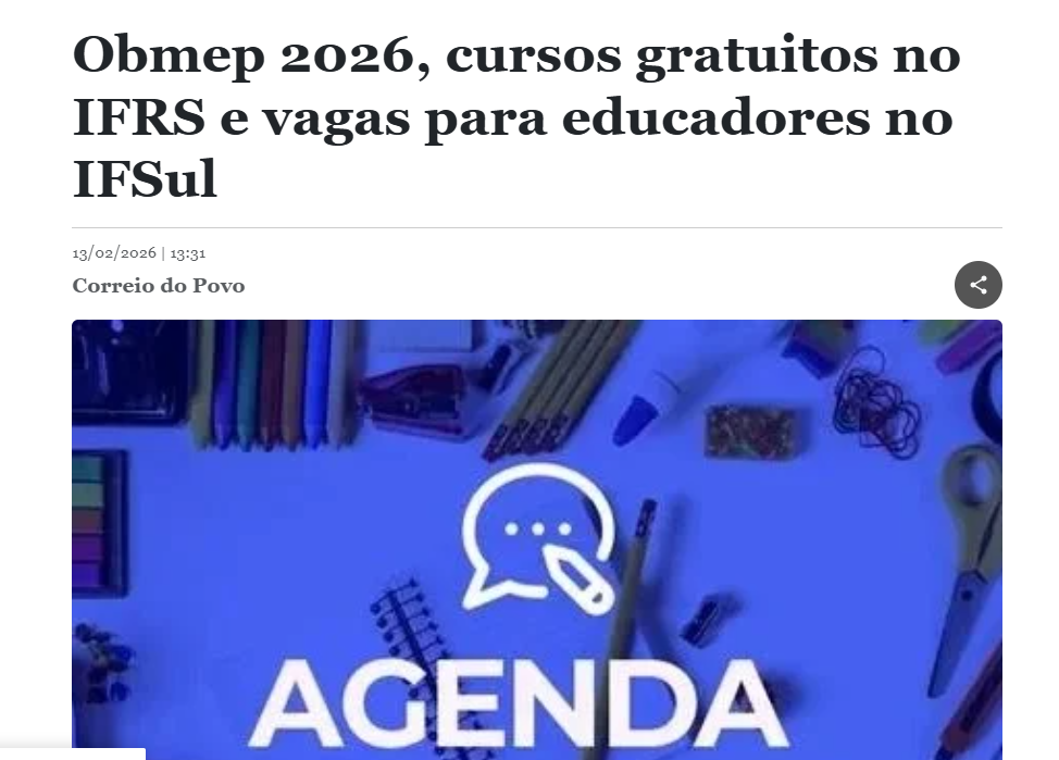 Correio do Povo - Obmep 2026, cursos gratuitos no IFRS e vagas para educadores no IFSul