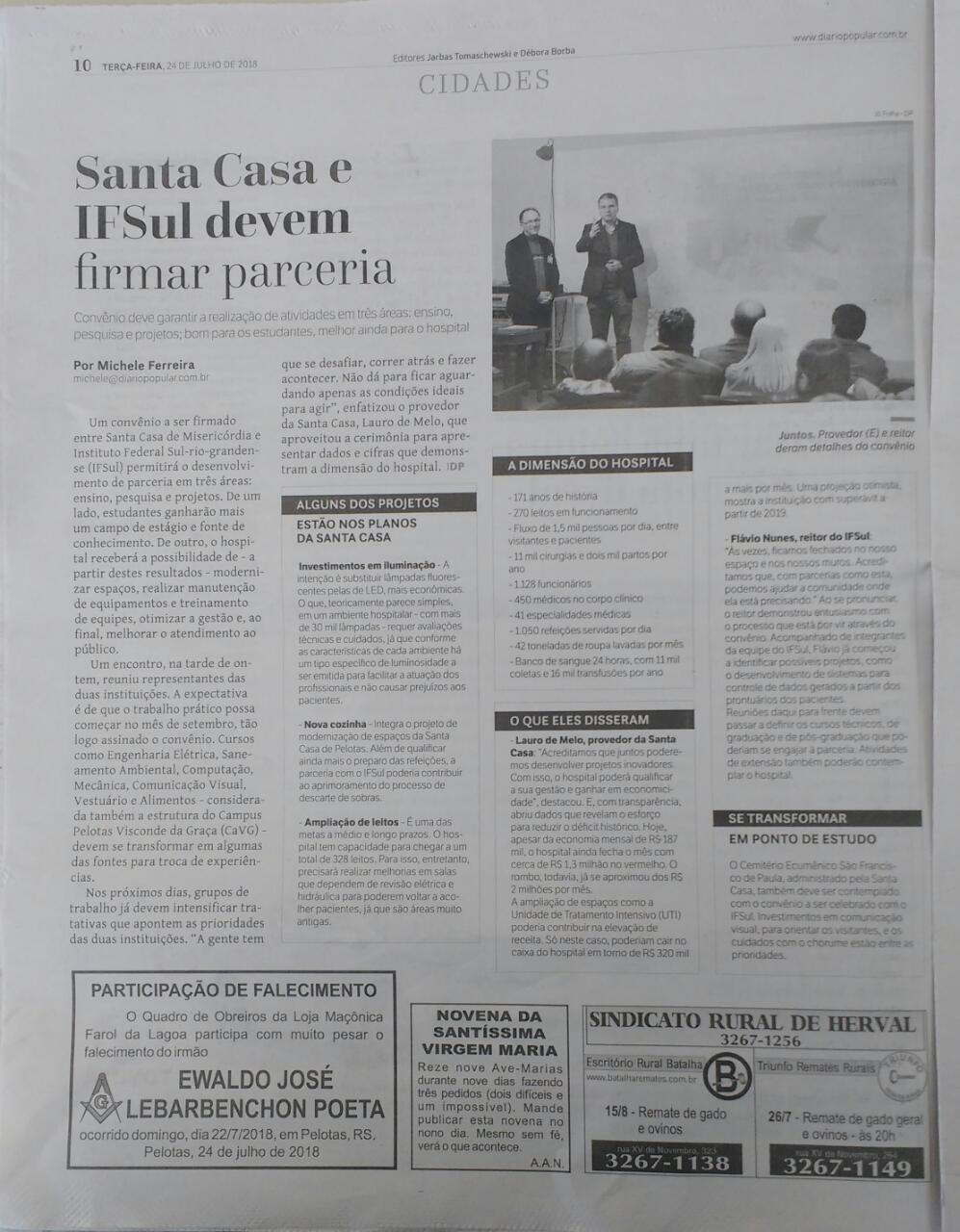 Diário Popular - Santa Casa e IFSul devem firmar parceria