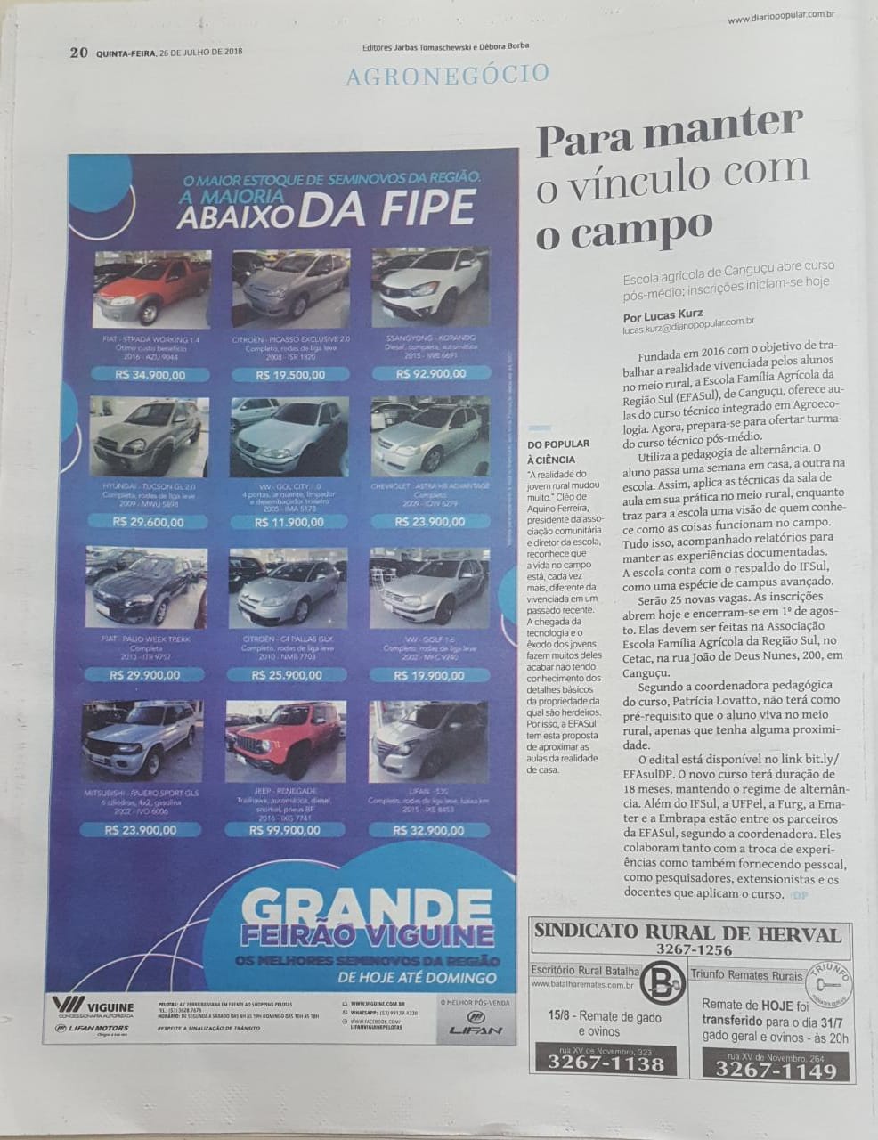 Diário Popular - Parceiros da Escola agrícola de Canguçu