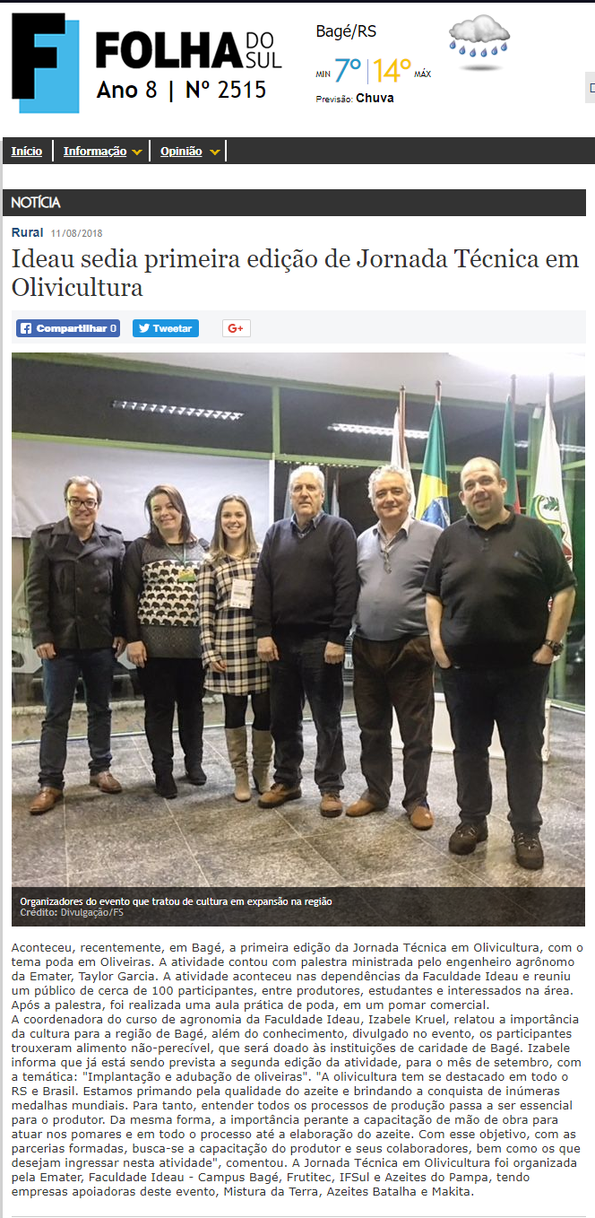 Folha do Sul - Ideau sedia primeira edição da Jornada Técnica em Olivicultura