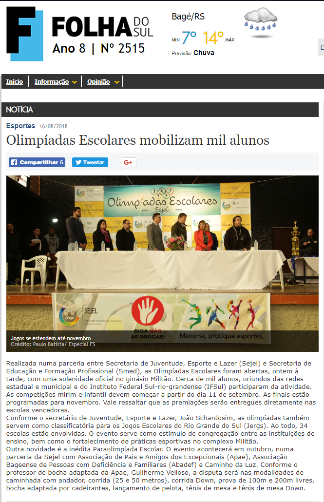 Folha do Sul - Olimpíadas Escolares mobilizam mil alunos