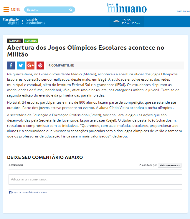 Jornal Minuano - Abertura dos Jogos Olímpicos Escolares acontece no Militão
