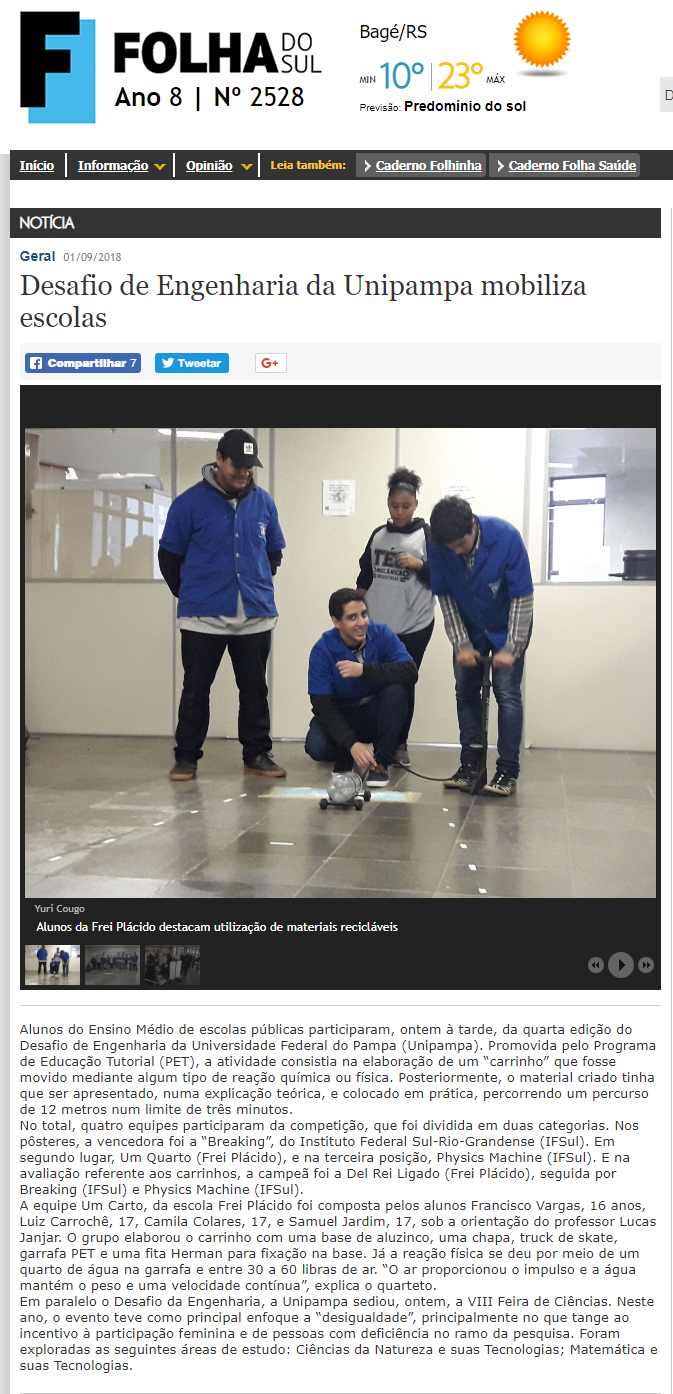 Folha do Sul - Desafio de Engenharia da Unipampa mobiliza escolas