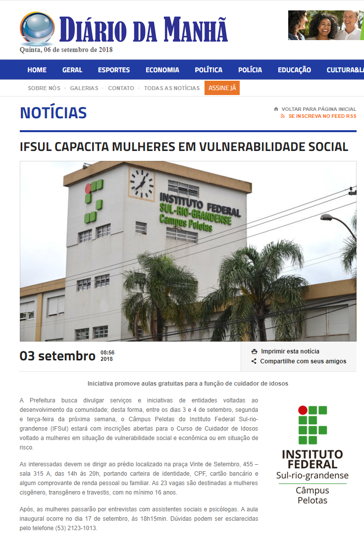 Diário da Manhã - IFSul capacita mulheres em vulnerabilidade social