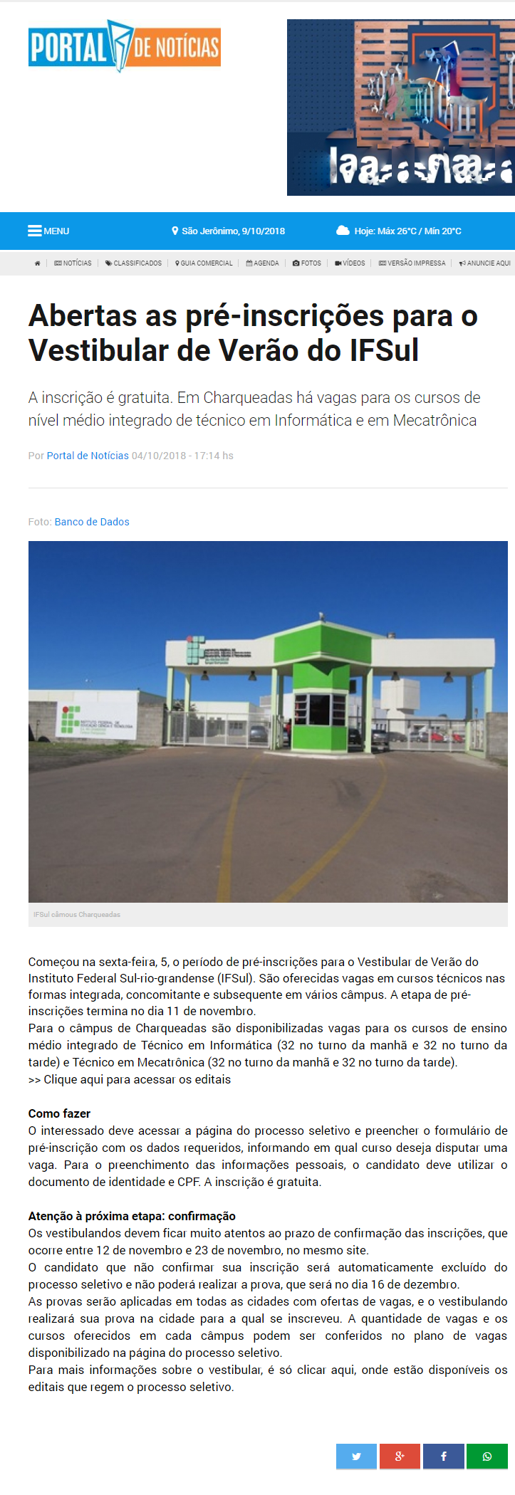 Portal de Notícias - Abertas as pré-inscrições para o Vestibular de Verão IFSul
