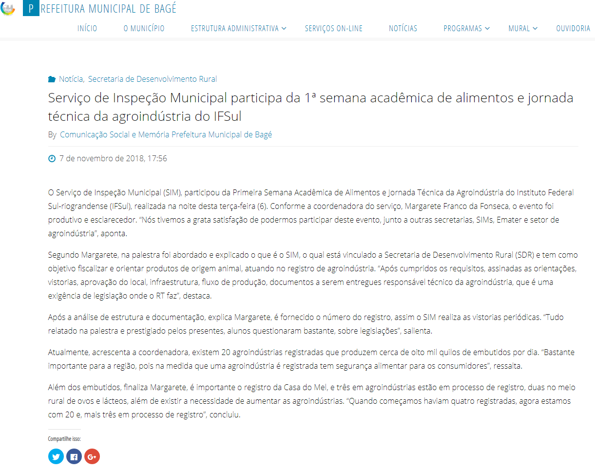 Prefeitura de Bagé - Serviço de inspeção municipal participa da 1ª semana acadêmica de alimentos e jornada técnica da agroindústria do IFSul