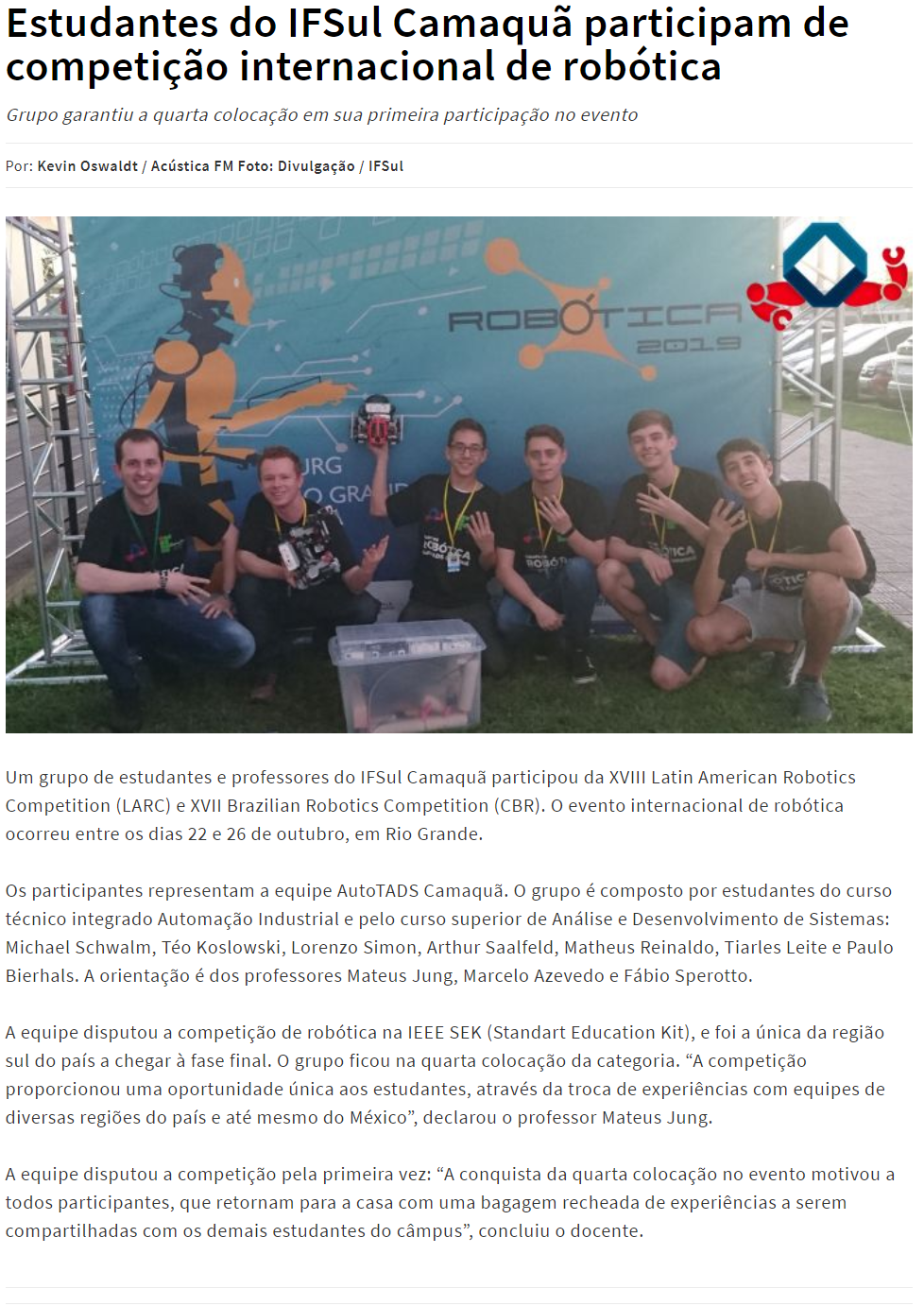 Rádio Acústica FM - Estudantes do IFSul Camaquã participam de competição internacional de robótica