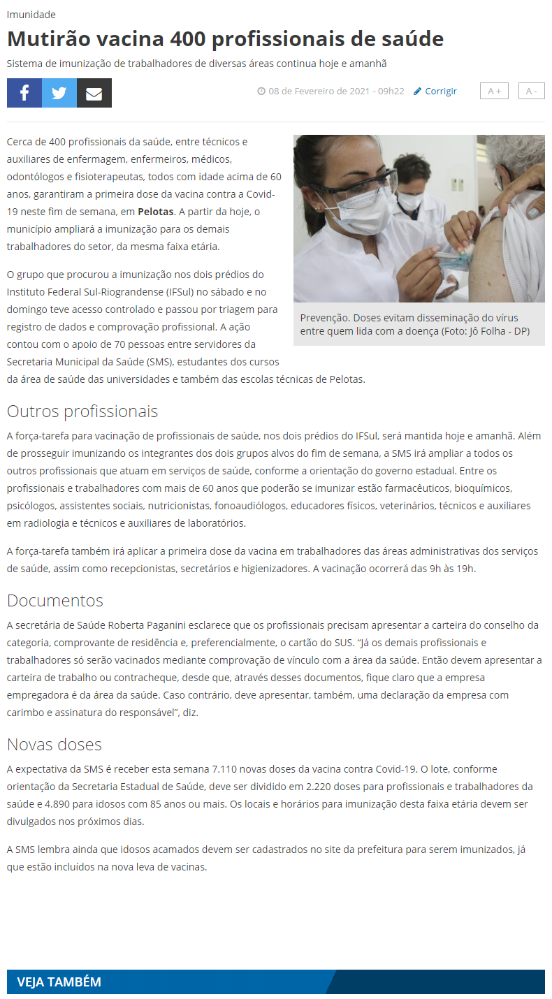 Diário Popular - Mutirão vacina 400 profissionais de saúde