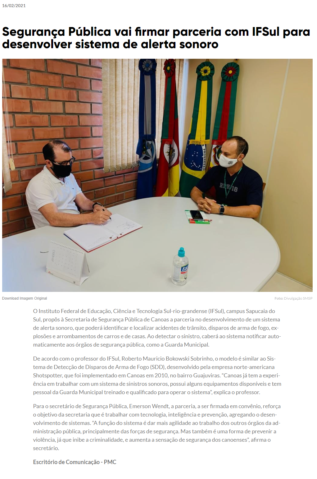 Prefeitura de Canoas - Segurança Pública vai firmar parceria com IFSul para desenvolver sistema de alerta sonoro