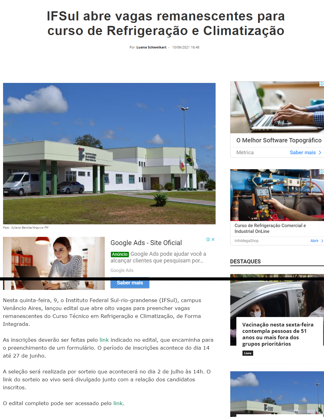 IFSul abre vagas remanescentes para curso de Refrigeração e Climatização