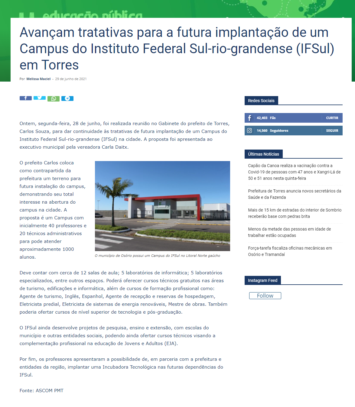 Rádio Maristela - Avançam tratativas para a futura implantação de um Campus do Instituto Federal Sul-rio-grandense (IFSul) em Torres