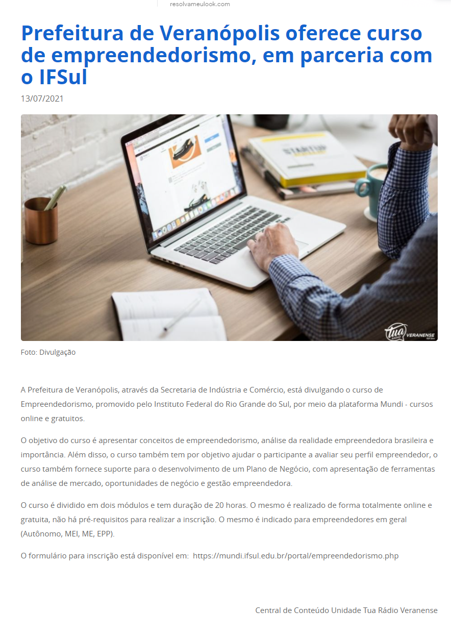 Tua Rádio - Prefeitura de Veranópolis oferece curso de empreendedorismo, em parceria com o IFSul