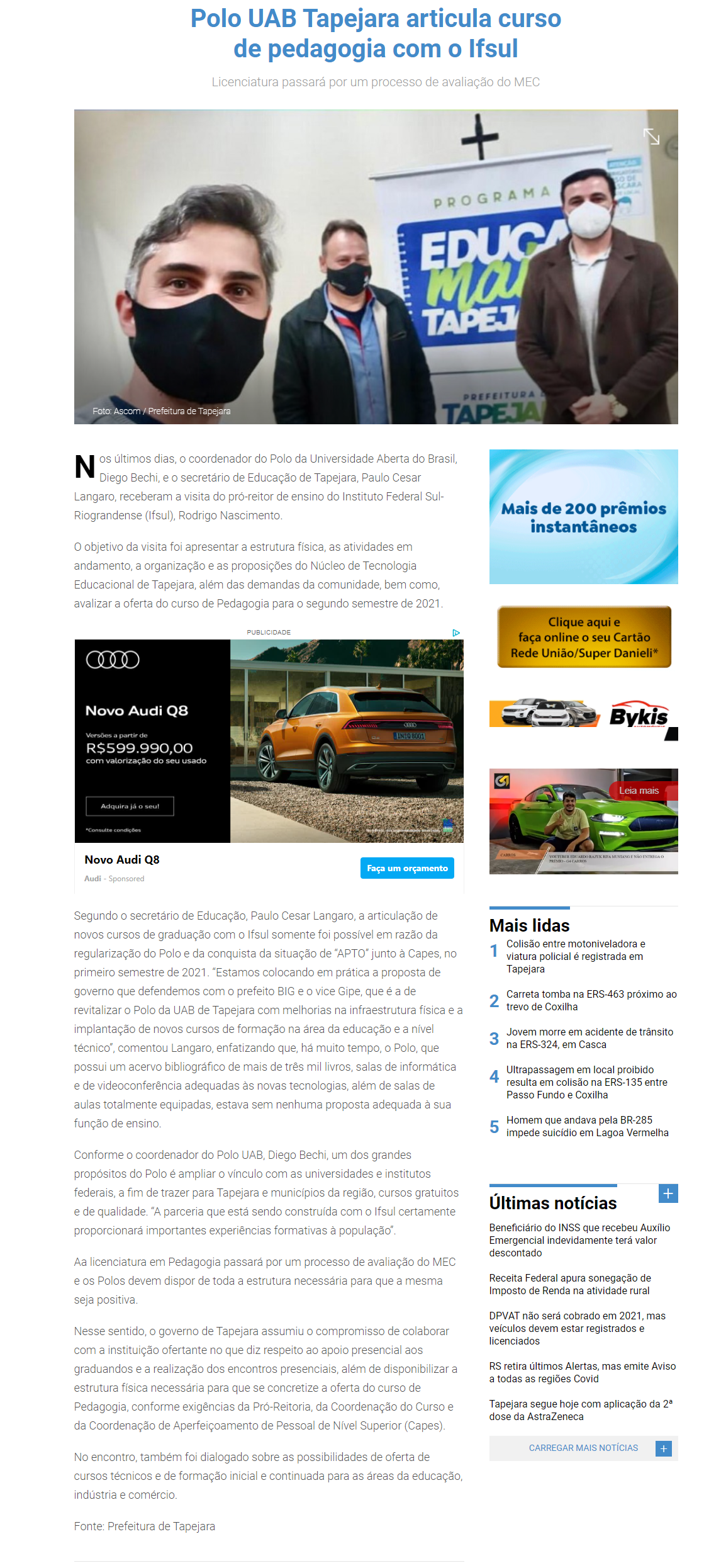 Rádio Tapejara - Polo UAB Tapejara articula curso de pedagogia com o IFSul