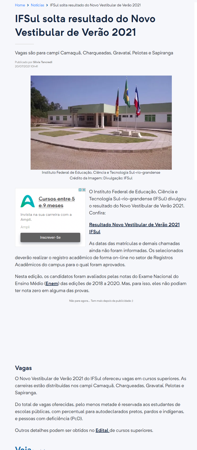 UOL - IFSul solta resultado do Novo Vestibular de Verão 2021
