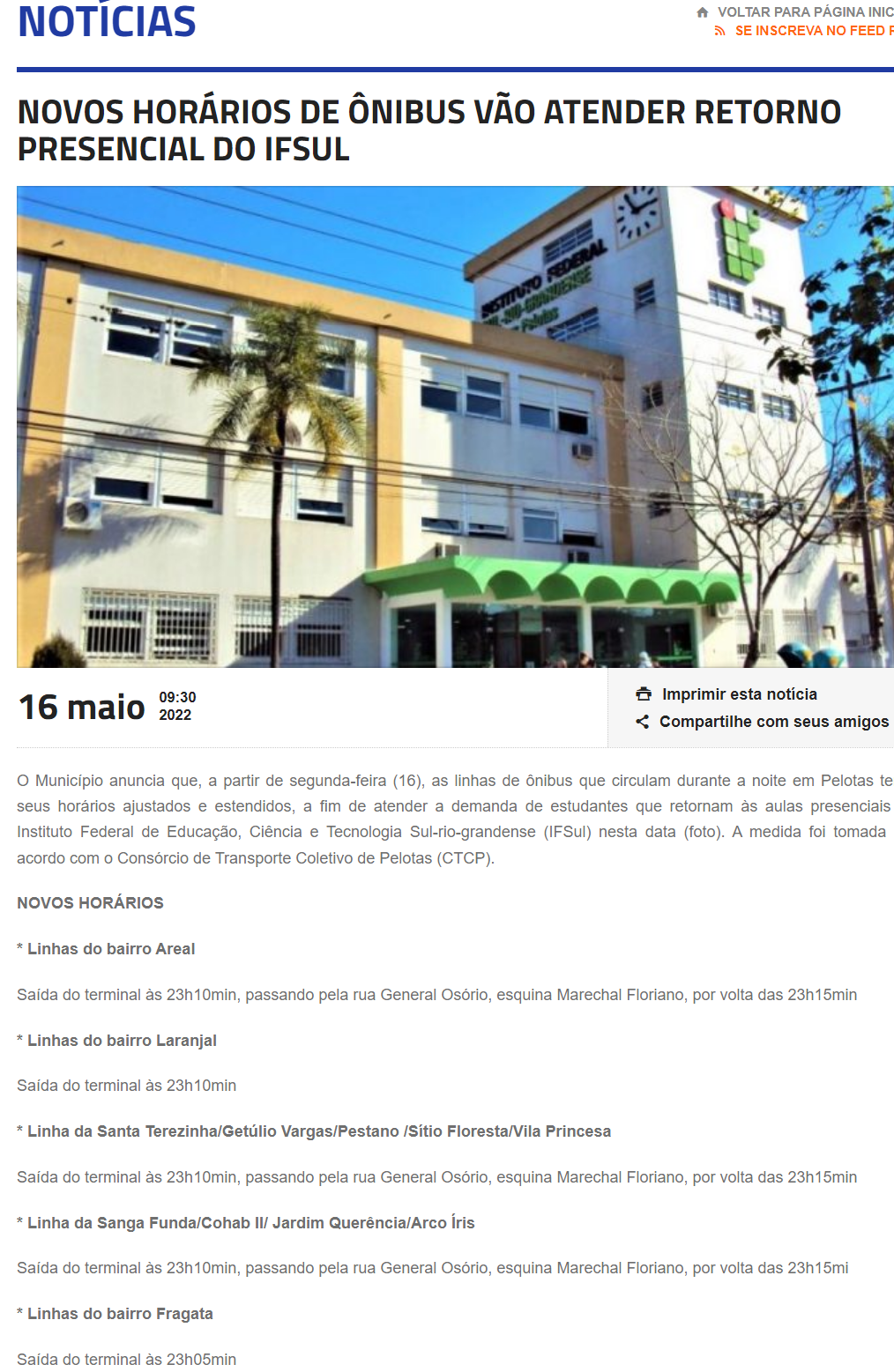 Diário da Manhã - NOVOS HORÁRIOS DE ÔNIBUS VÃO ATENDER RETORNO PRESENCIAL DO IFSUL