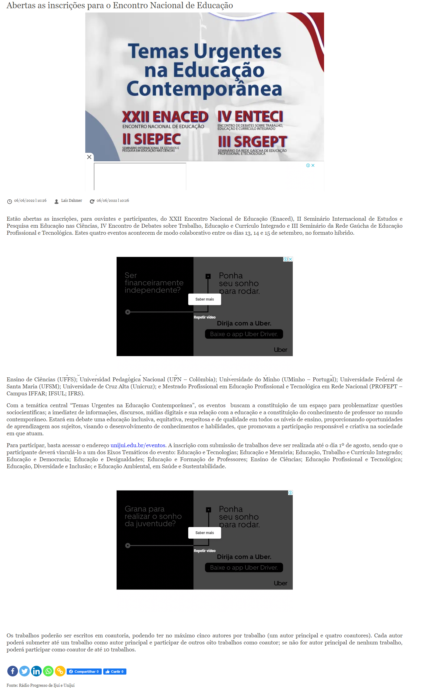 Rádio Progresso - Abertas as inscrições para o Encontro Nacional de Educação