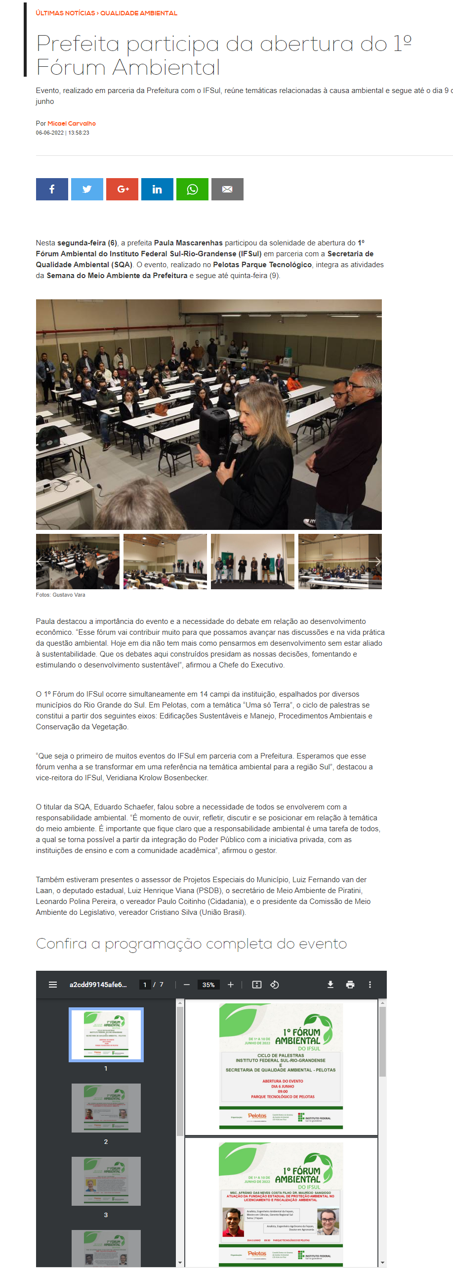 Site da Prefeitura de Pelotas - Prefeita participa da abertura do 1º Fórum Ambiental