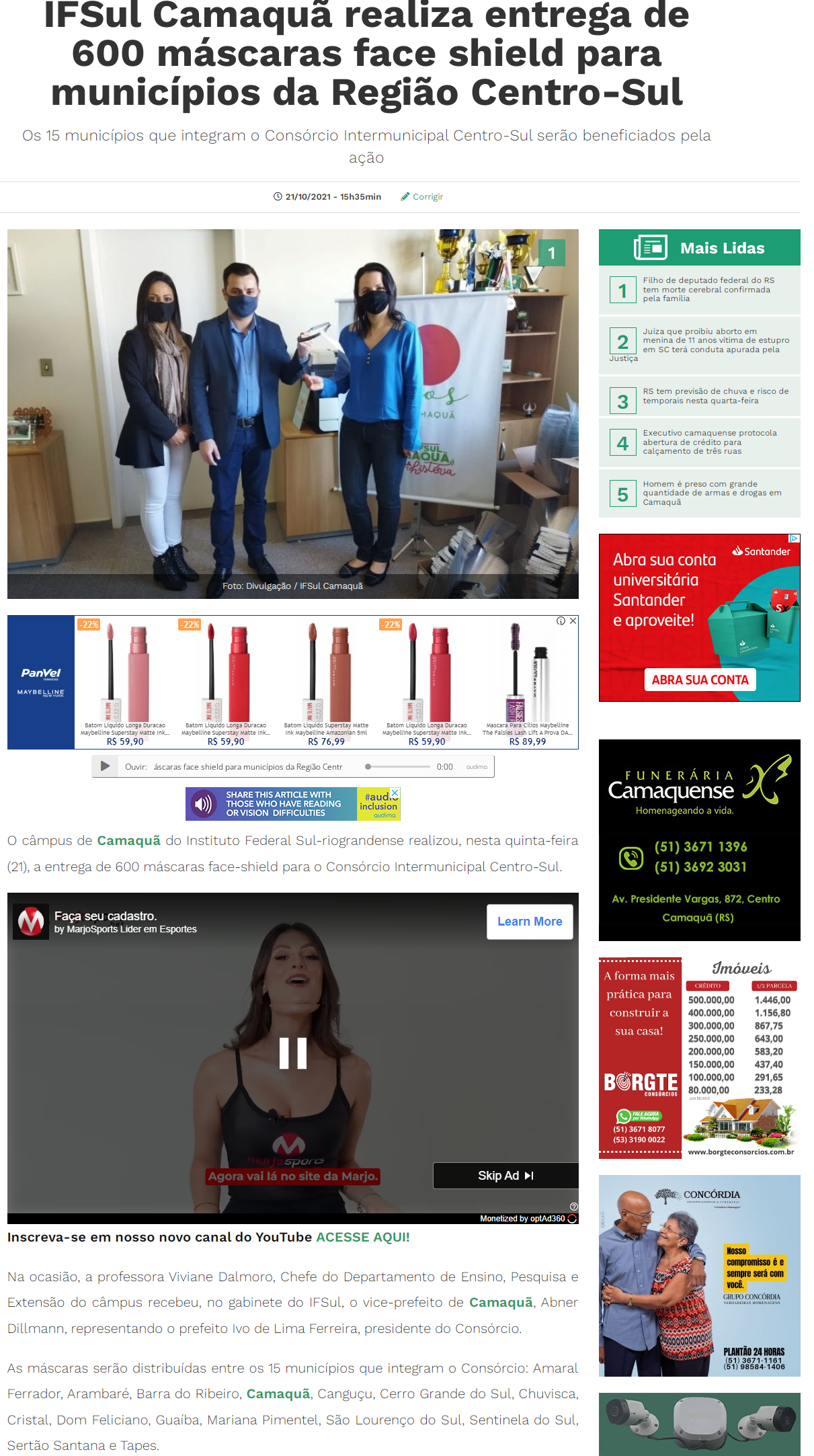 Blog do Juares - IFSul Camaquã realiza entrega de 600 máscaras face shield para municípios da Região Centro-Sul