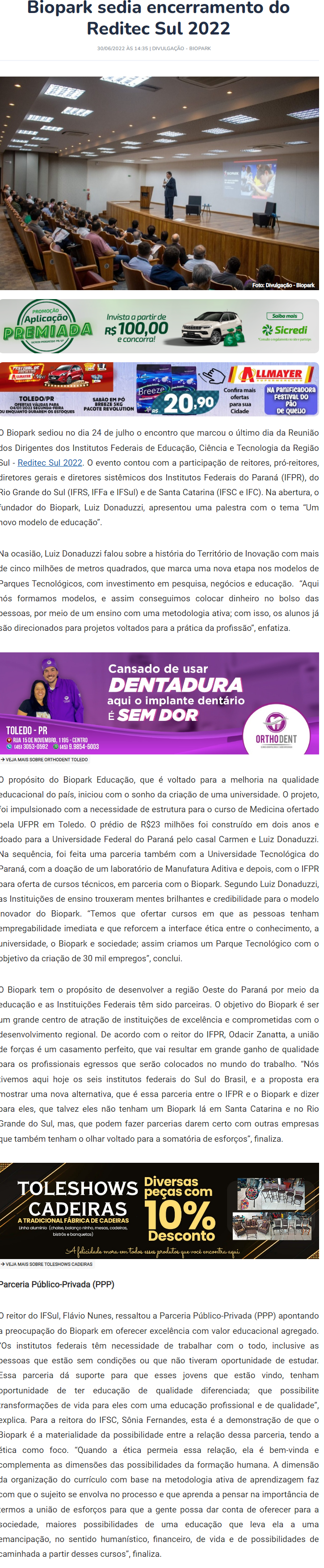 Toledo News -Biopark sedia encerramento do Reditec Sul 2022