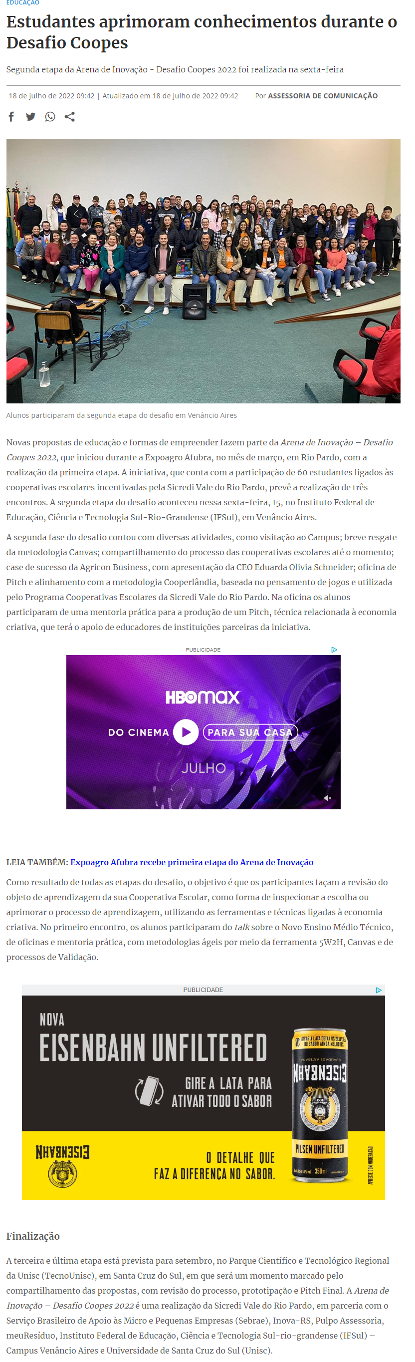 GAZ - Estudantes aprimoram conhecimentos durante o Desafio Coopes
