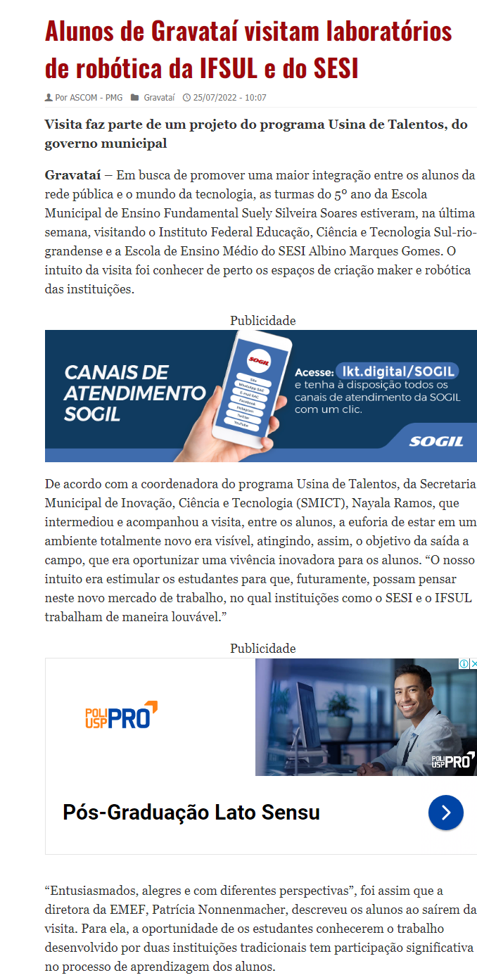 O reporter.net - Alunos de Gravataí visitam laboratórios de robótica da IFSUL e do SESI