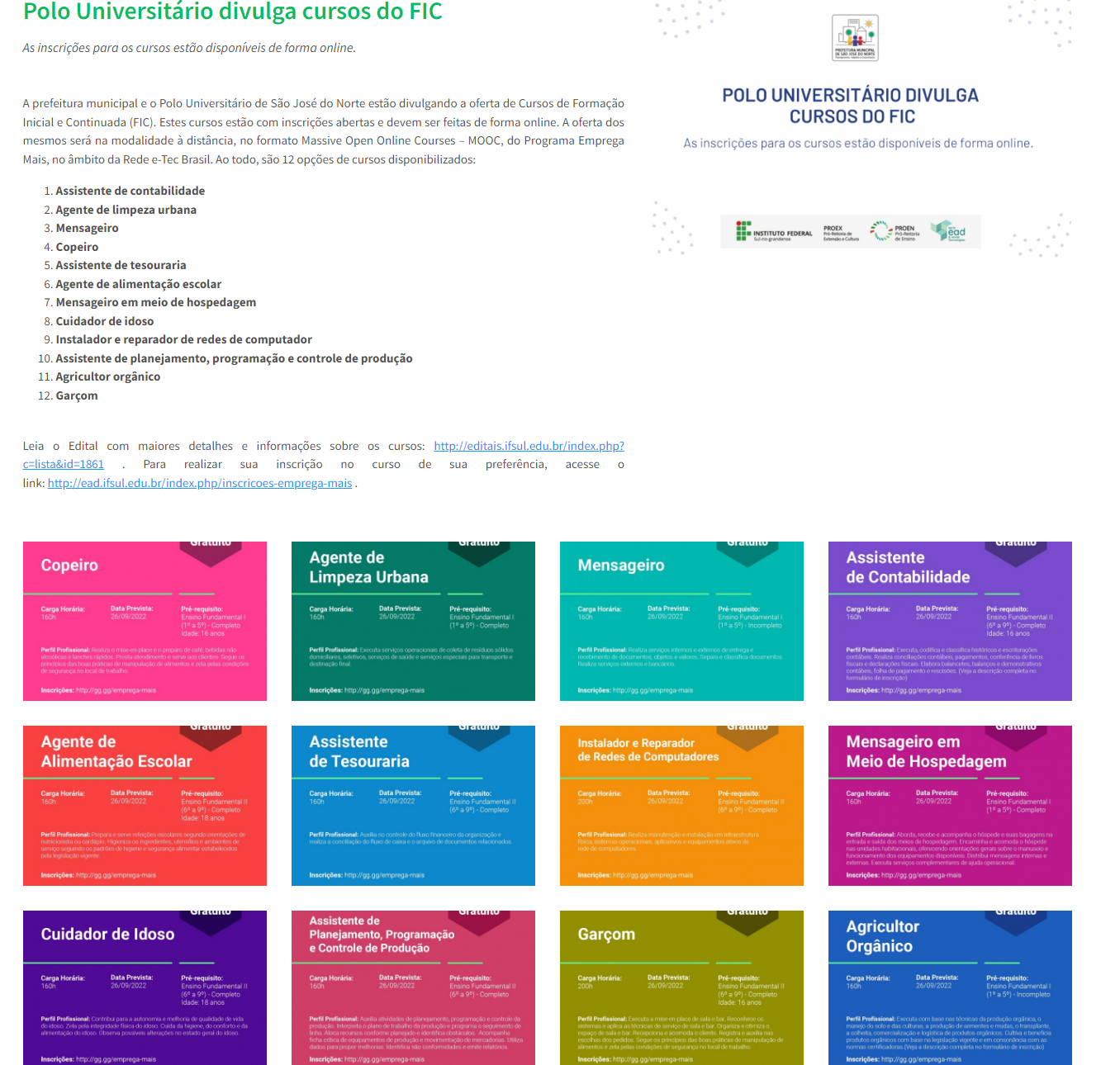 Prefeitura Municipal de São José do Norte - Polo Universitário divulga cursos do FIC