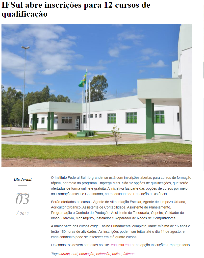 Olá Jornal - IFSul abre inscrições para 12 cursos de qualificação