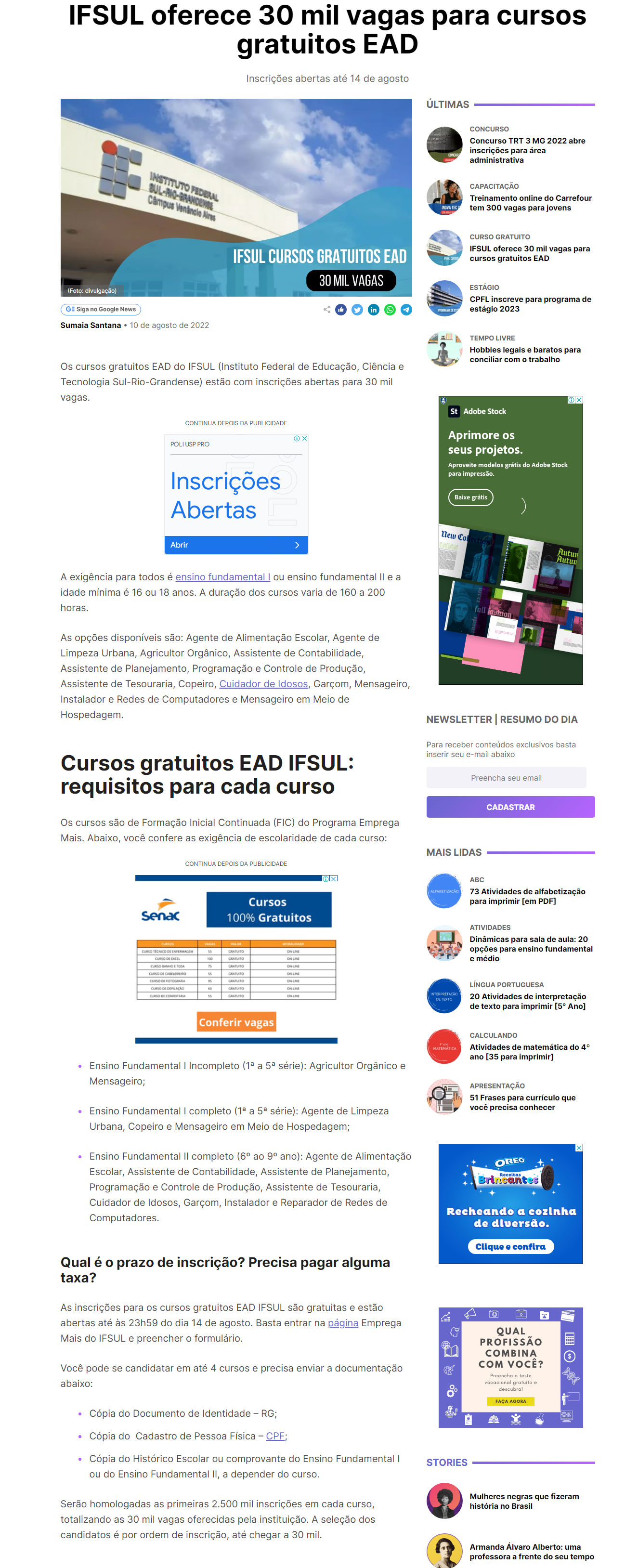 Via Carreira - IFSUL oferece 30 mil vagas para cursos gratuitos EAD