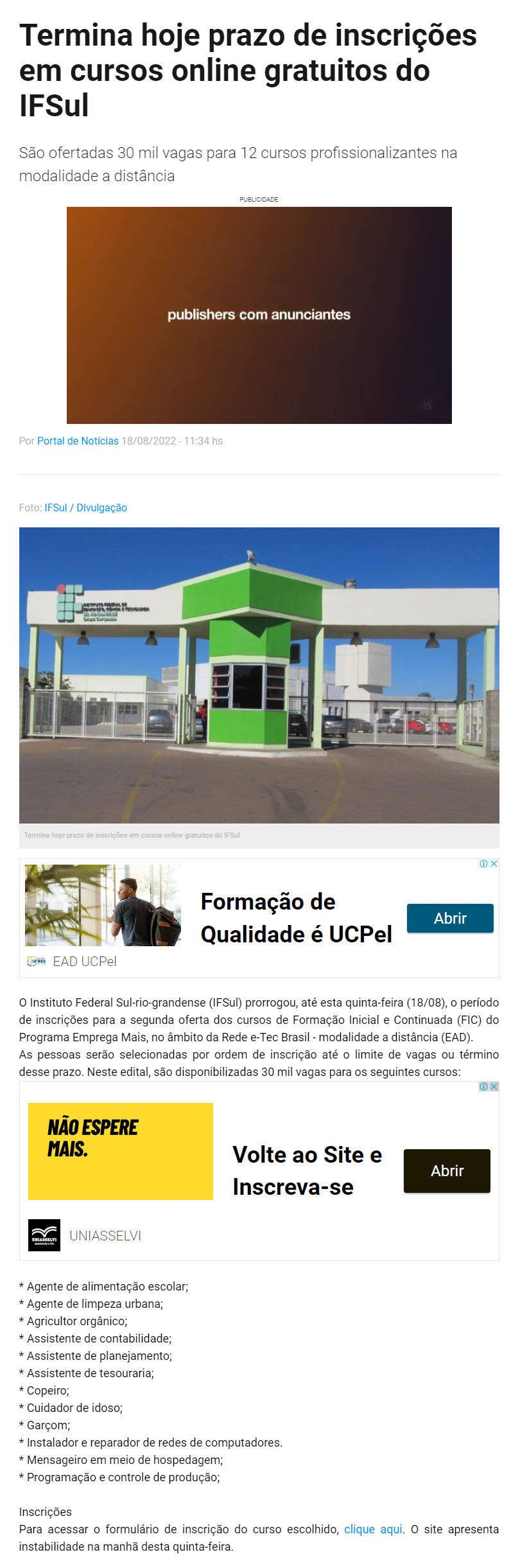 Portal de Notícias - Termina hoje prazo de inscrições em cursos online gratuitos do IFSul