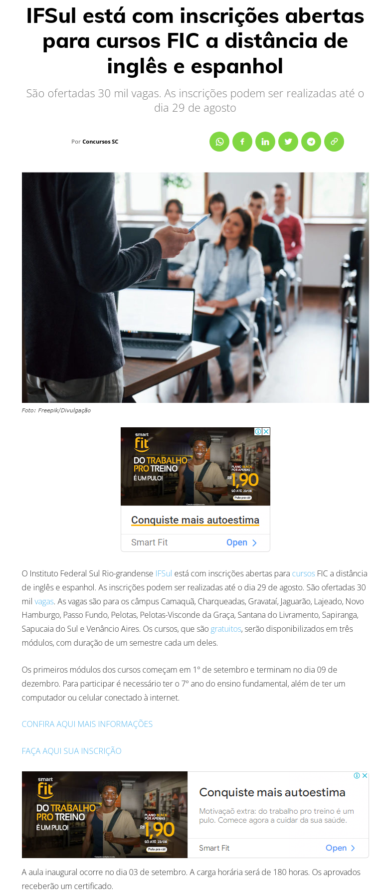 Concursos SC - IFSul está com inscrições abertas para cursos FIC a distância de inglês e espanhol