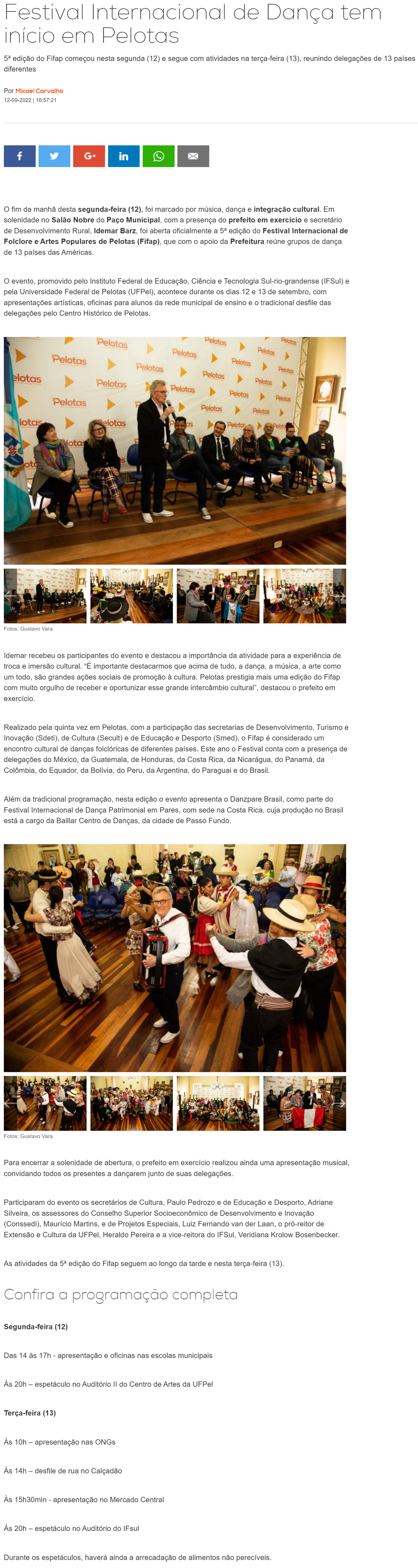Site da Prefeitura Municipal de Pelotas - Festival Internacional de Dança tem início em Pelotas