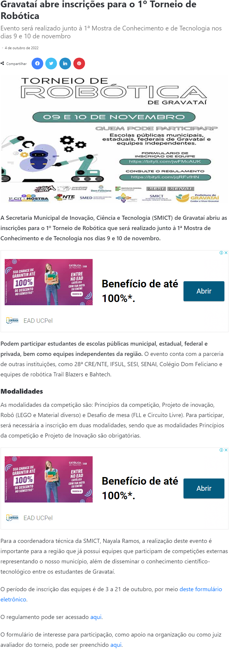 Revista News - Gravataí abre inscrições para o 1º Torneio de Robótica