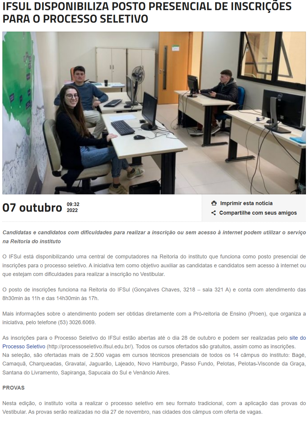 Diário da Manhã - IFSul disponibiliza posto presencial de inscrições para o processo seletivo