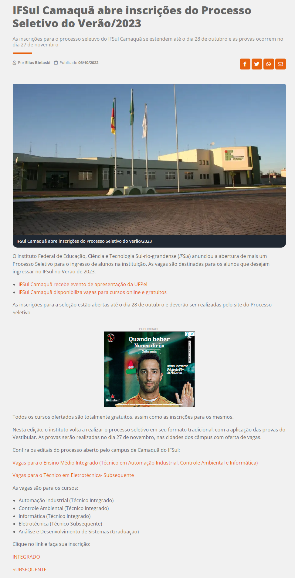 Clic Camaquã - IFSul Camaquã abre inscrições do Processo Seletivo do Verão/2023