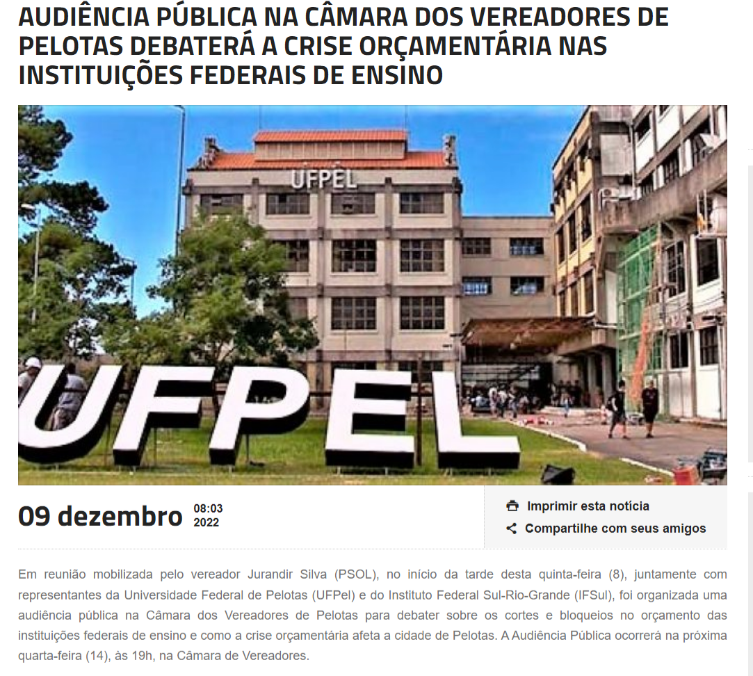Diário Popular - Audiência Pública na Câmara dos Vereadores de Pelotas debaterá a crise orçamentária