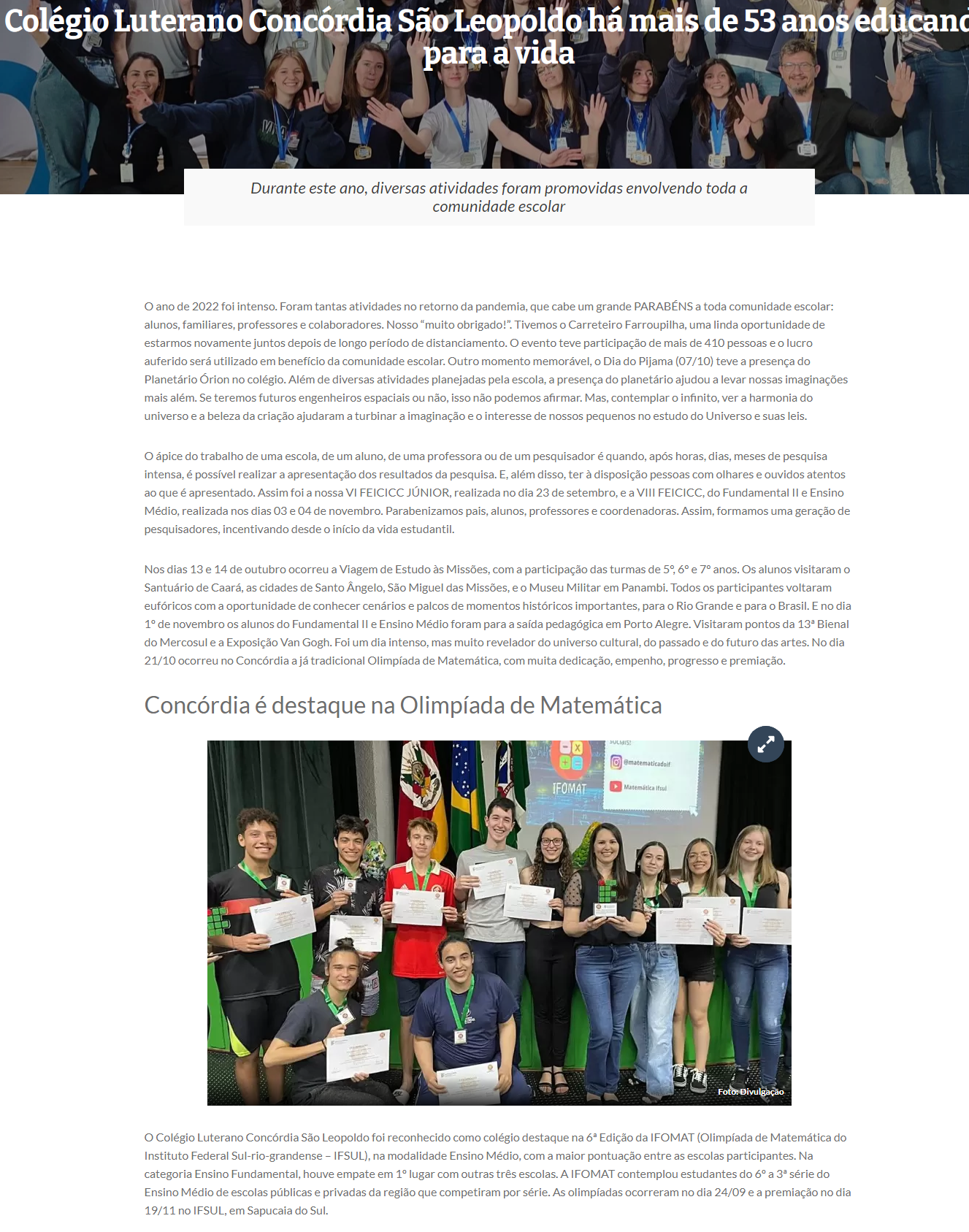Jornal NH - Colégio Luterano Concórdia São Leopoldo há mais de 53 anos educando para a vida