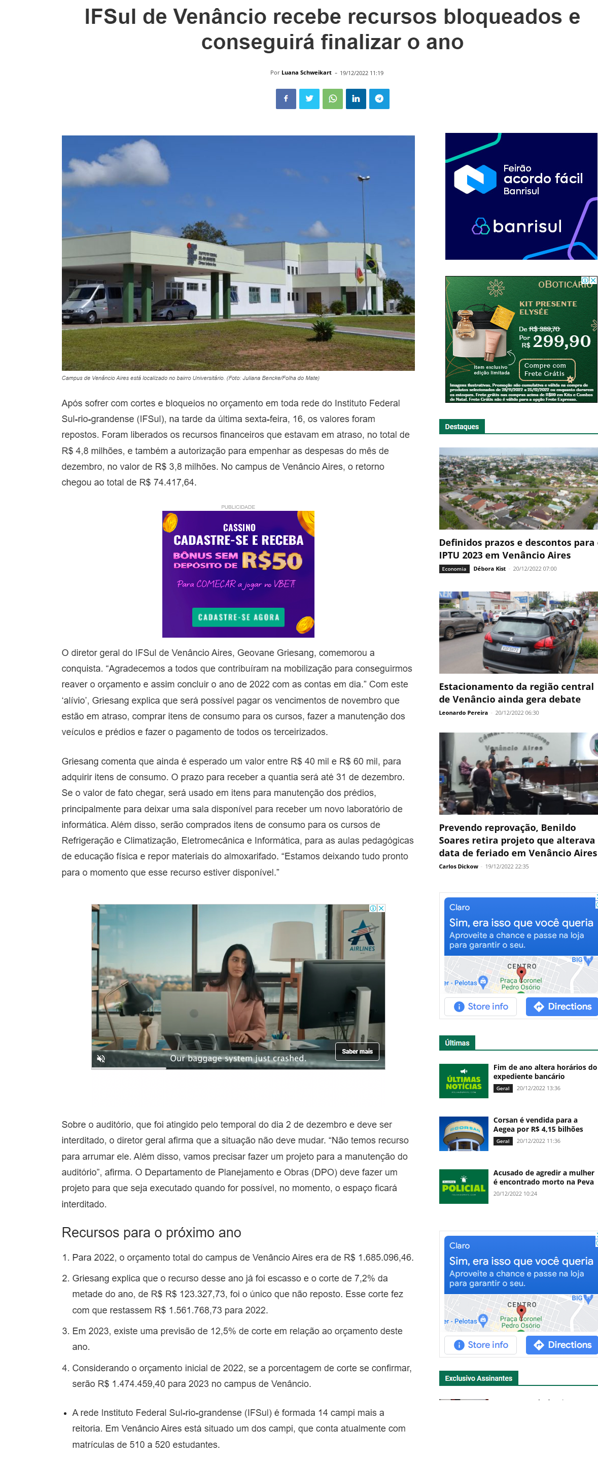 Folha do Mate - IFSul de Venâncio recebe recursos bloqueados e conseguirá finalizar o ano