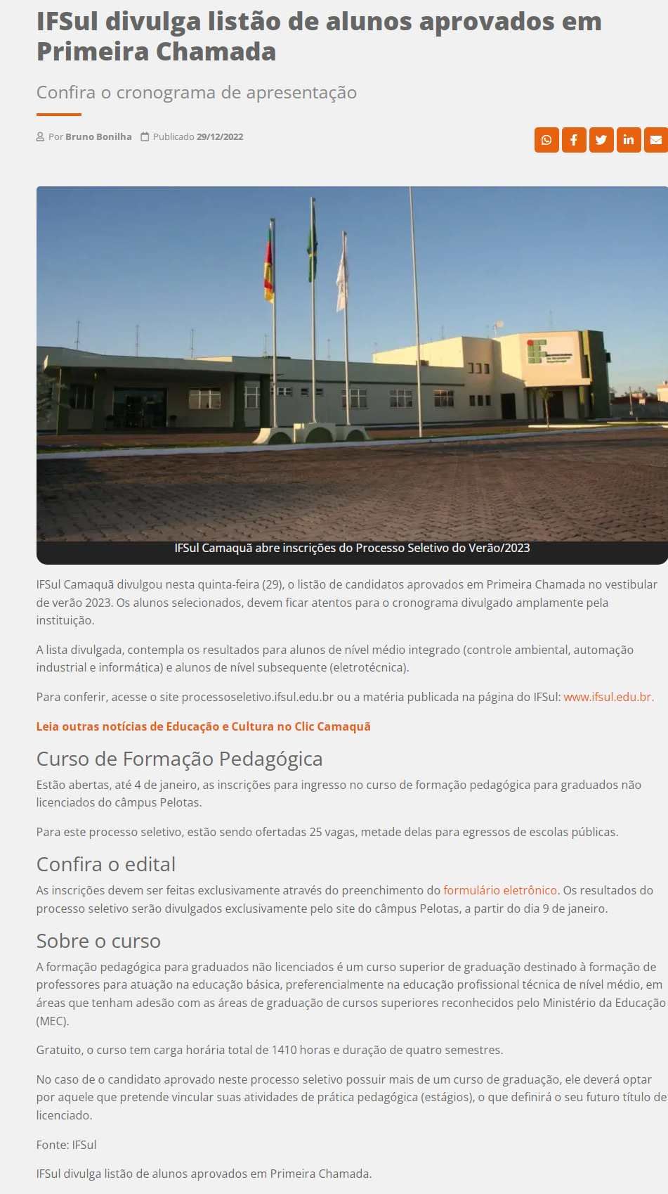 Clic Camaquã - IFSul divulga listão de alunos aprovados em Primeira Chamada