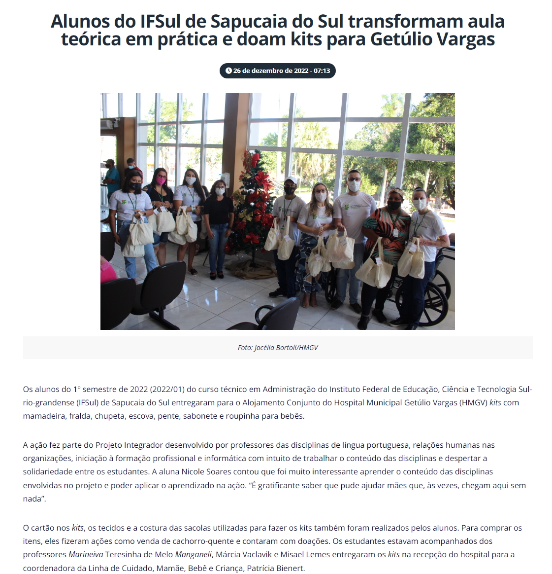 Berlinda News - Alunos do IFSul de Sapucaia do Sul transformam aula teórica em prática e doam kits para Getúlio Vargas