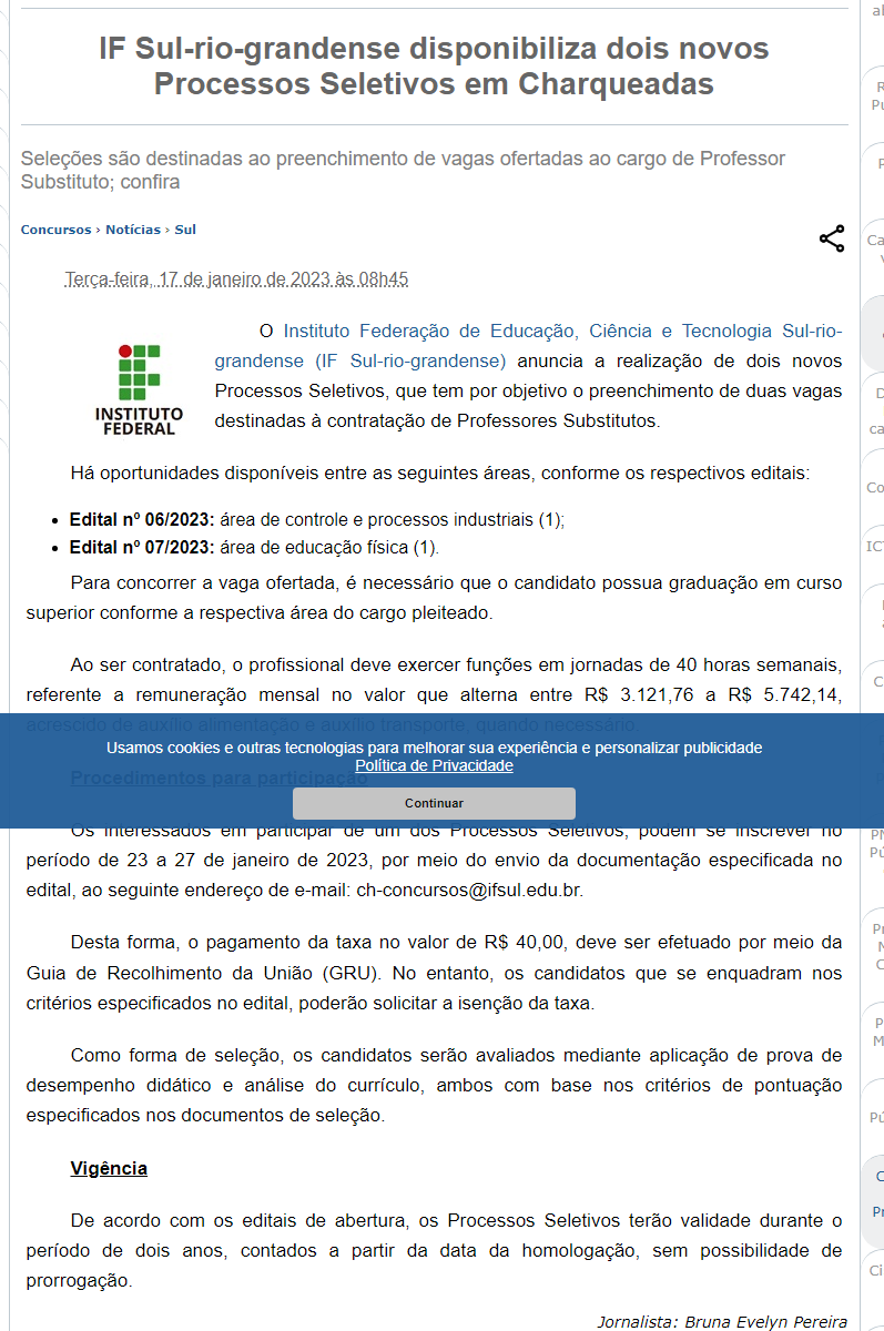 PCI Concursos - IF Sul-rio-grandense disponibiliza dois novos Processos Seletivos em Charqueadas