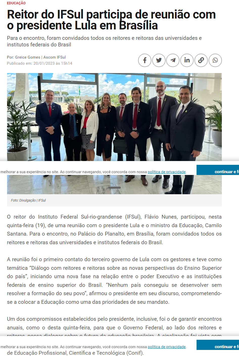 Acústica FM - Reitor do IFSul participa de reunião com o presidente Lula em Brasília