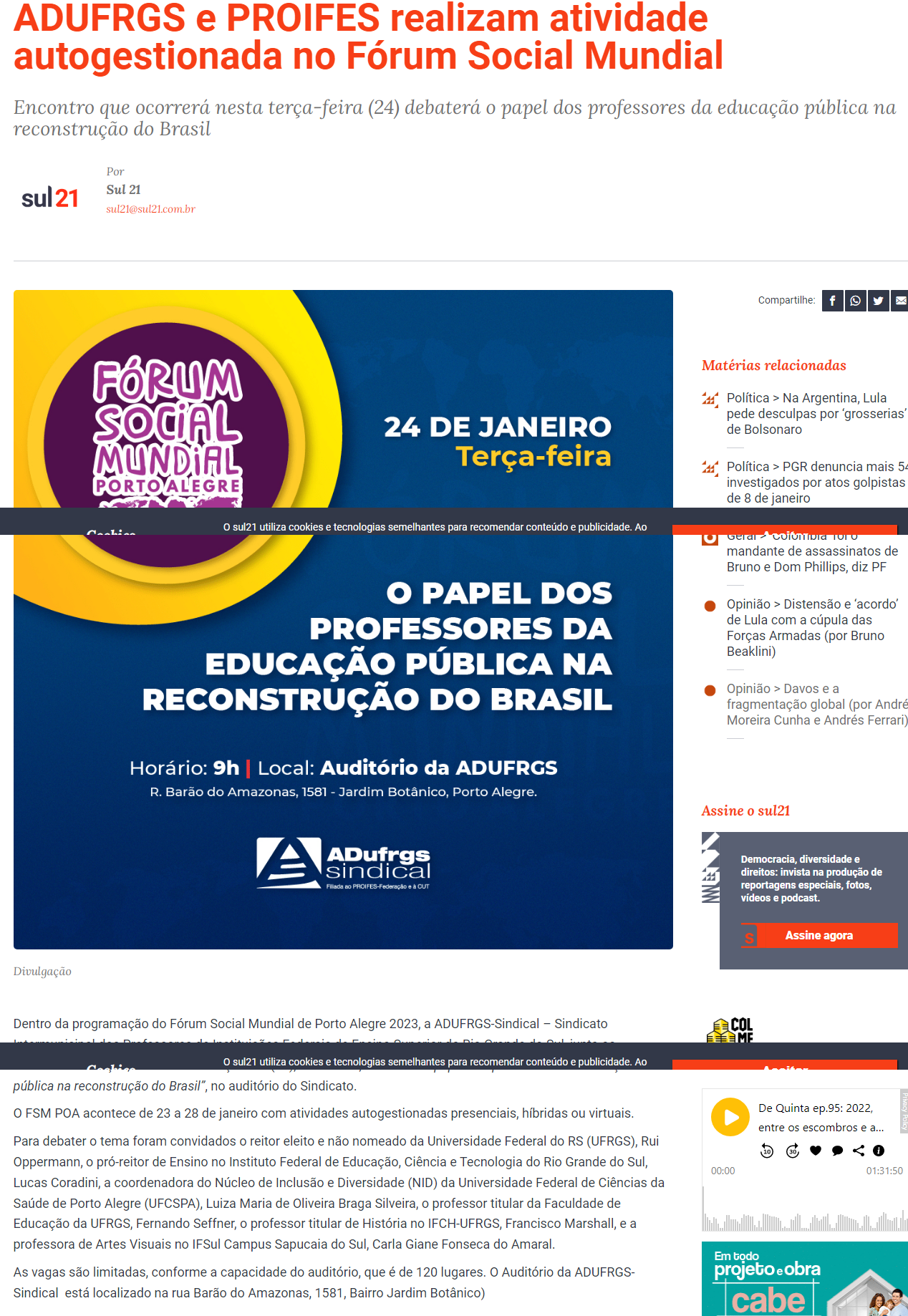 Sul 21 - ADUFRGS e PROIFES realizam atividade autogestionada no Fórum Social Mundial