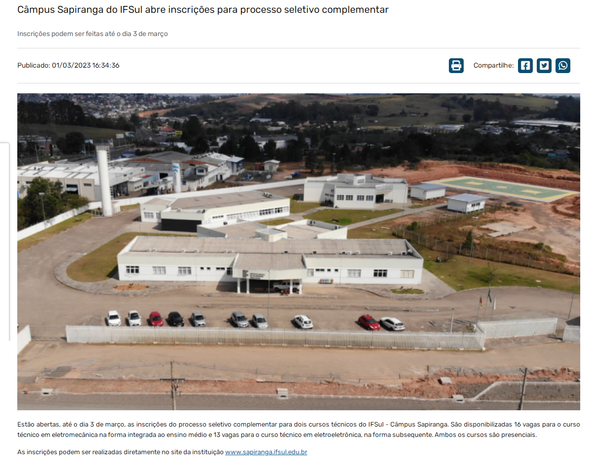 Prefeitura de Sapiranga - Câmpus Sapiranga do IFSul abre inscrições para processo seletivo complementar