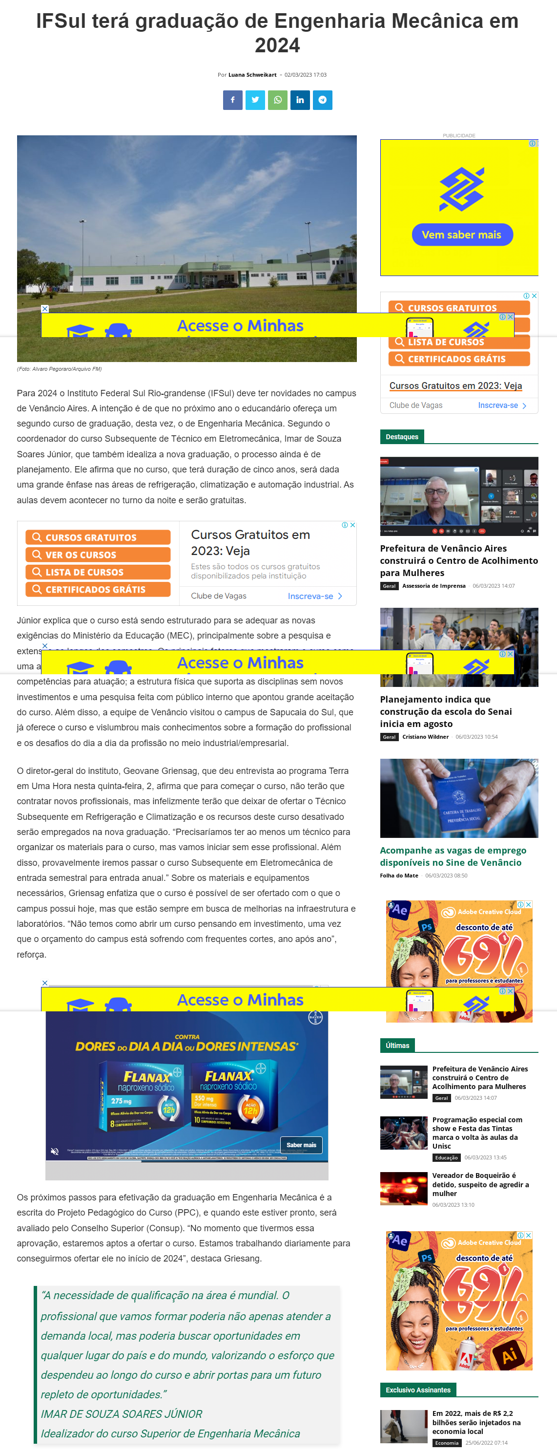 Folha do Mate - IFSul terá graduação de Engenharia Mecânica em 2024