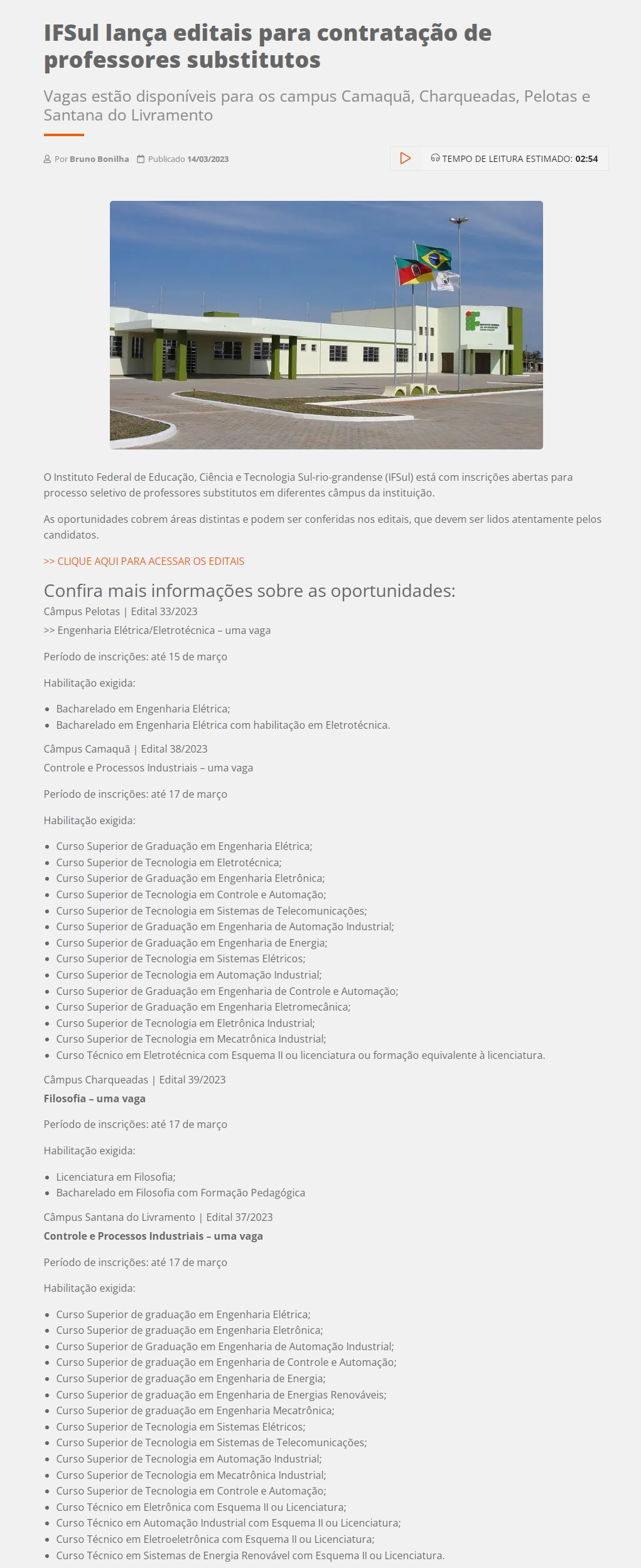 Clic Camaquã - IFSul lança editais para contratação de professores substitutos