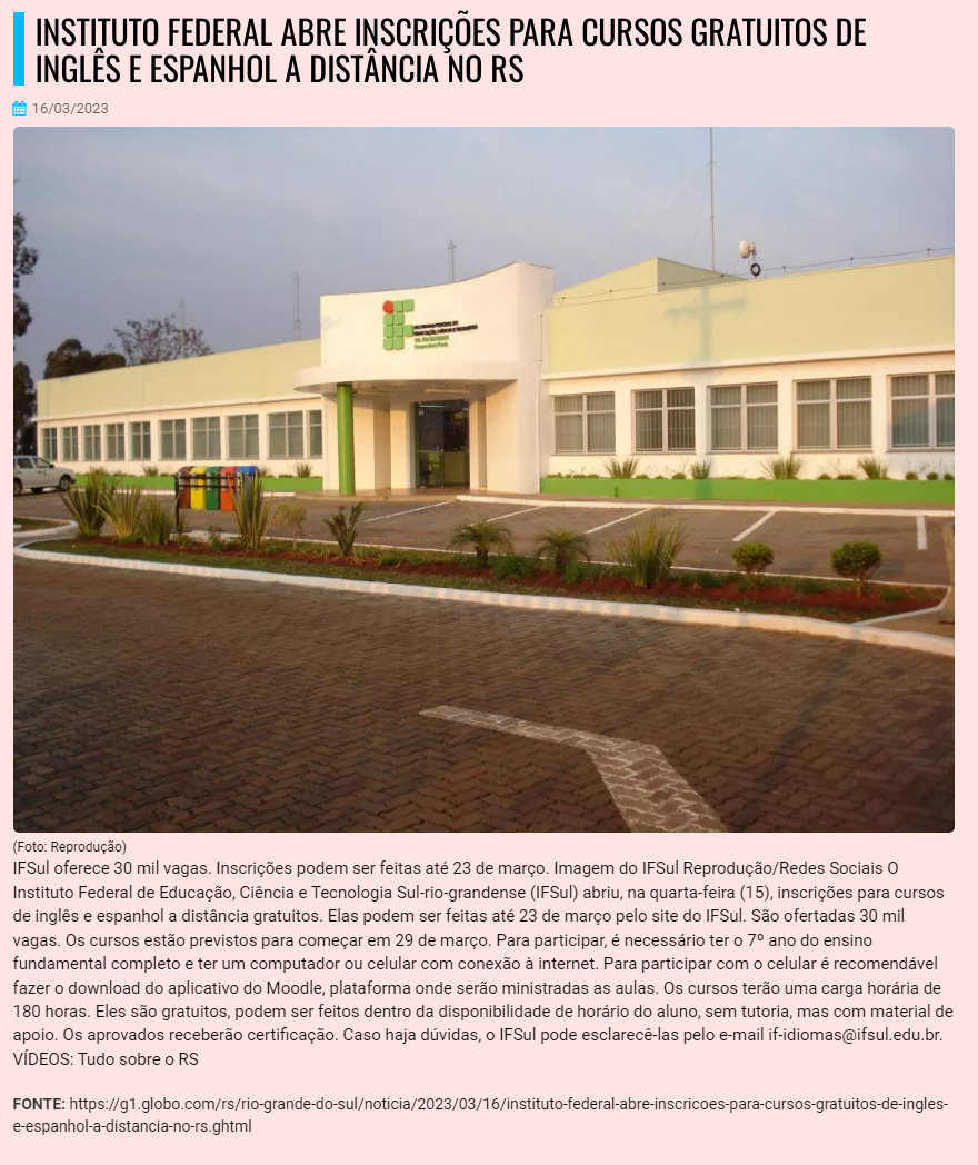 Amor Butiá FM - Instituto Federal abre inscrições para cursos gratuitos de inglês e espanhol a distância no RS
