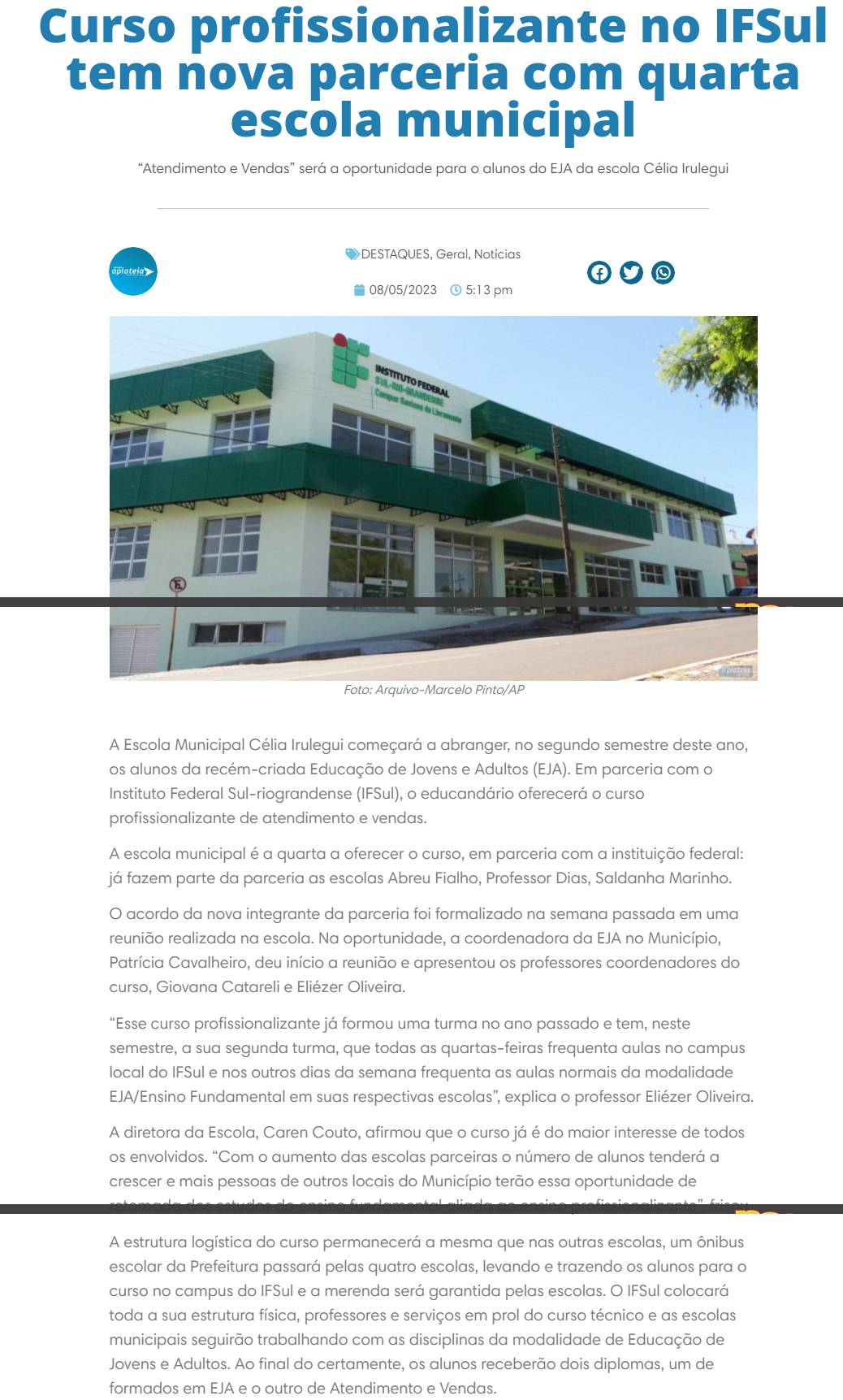 A Platéia - Curso profissionalizante no IFSul tem nova parceria com quarta escola municipal