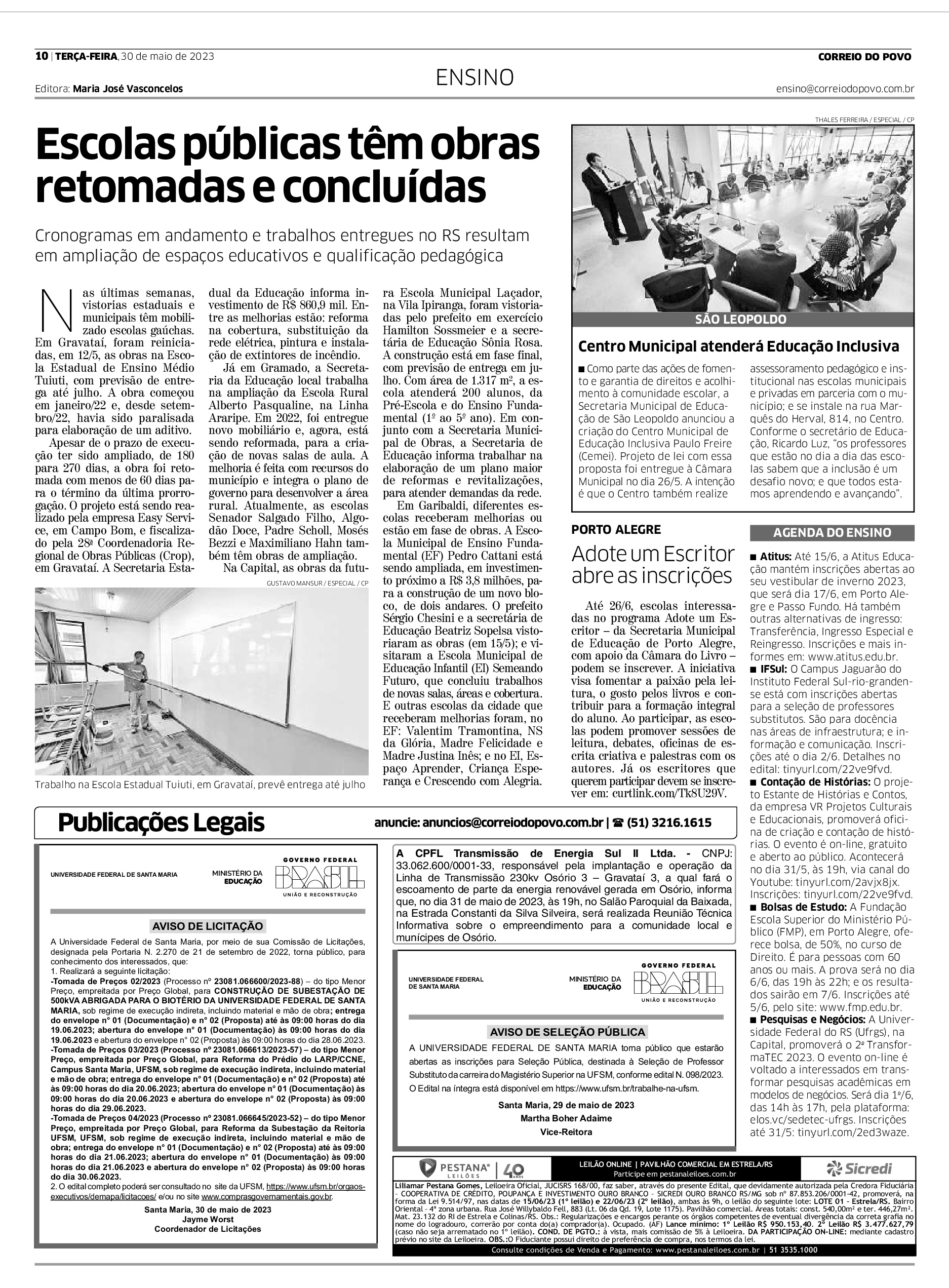 Correio do povo - Seleção em Jaguarão para professor substituto